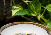 En una vaina de cacao helado, espumoso y crujiente, Sorbet de chocolate con infusión de citronela