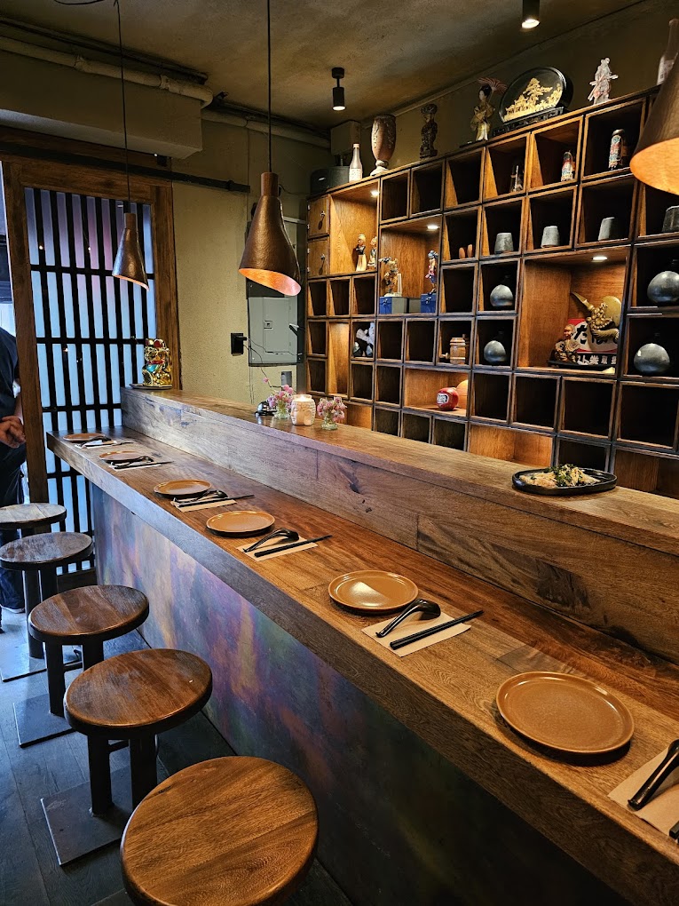 También hay una selección de sake, entre ellos Gekkeikan House Sake, Sayuri o Hakkaisan– servidos en distintas presentaciones, además de destilados que abarcan mezcal, ginebra, ron, tequila, vodka y whisky. Para cerrar la visita, la carta ofrece digestivos, café y varios tés de inspiración japonesa, como hojicha, genmai cha o sencha, perfectos para terminar el menú con calma