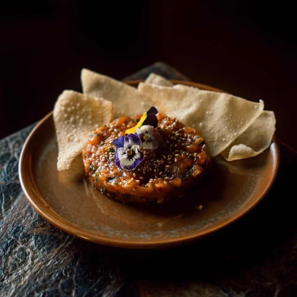 La propuesta de Sōōp es concisa y directa: algunas entradas bien elegidas, una sección de sandos, varias versiones de ramen y un par de postres. Aunque el menú parezca corto, al final de la visita queda claro que cada plato se trabaja con cuidado extremo, tanto en el sazón como en la selección de ingredientes. Se organiza en una serie de platos pensados para ir de menos a más. Entre las entradas aparecen opciones frescas como la ensalada de pepino, las gyozas de camarón, las tostadas de ebi o las Korean chicken wings, además de ensaladas con alga, edamames sazonados y un gazpacho con seaweed que aporta un toque salino muy sutil.