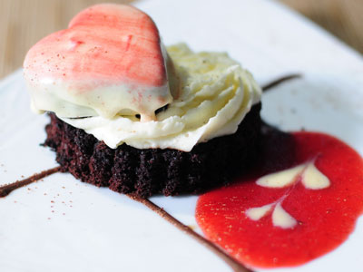- Souquet de ajos tiernos y alcachofas con paloma de queso de cabra y alas de flor de calabaza.