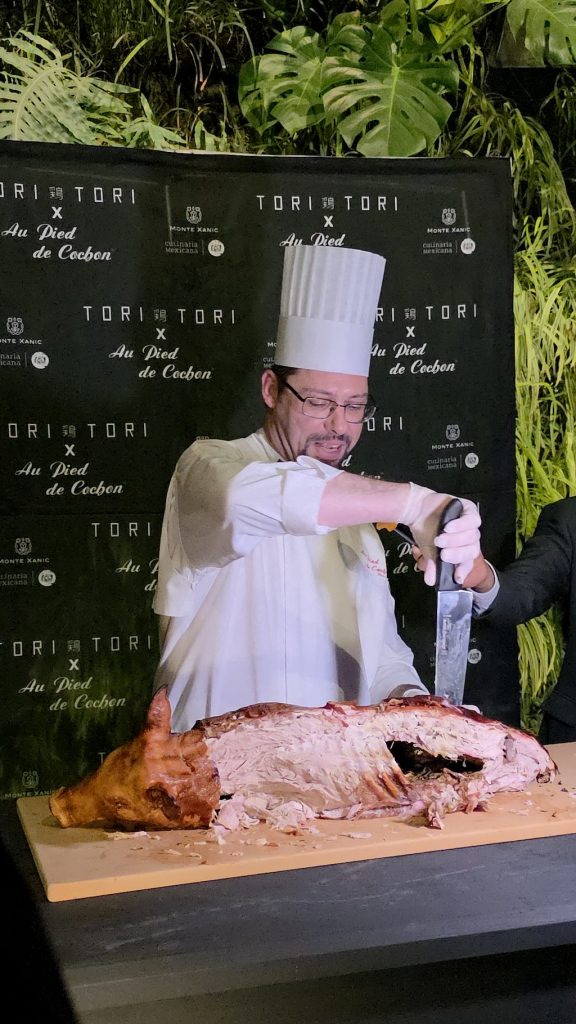 En Tori Tori Polanco, una cena especial reunió a Au Pied de Cochon en una colaboración donde el cerdo fue el protagonista absoluto de la noche. Más allá del menú, la experiencia permitió a los asistentes presenciar en vivo el ronqueo de cerdo, una práctica poco habitual en este tipo de encuentros y que aportó contexto a cada tiempo servido.