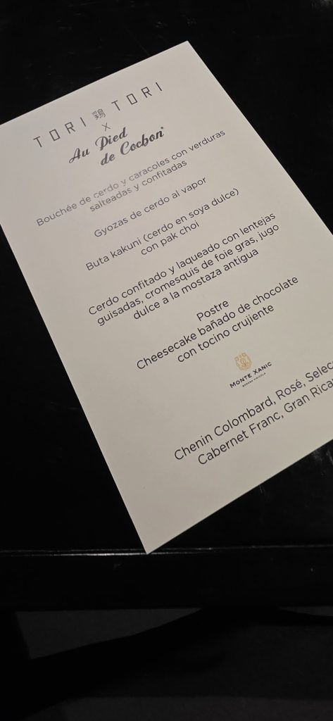 Con esta colaboración, Tori Tori Temístocles y Au Pied de Cochon propusieron una cena donde la técnica y el sabor caminaron en la misma dirección, en una noche centrada en el cerdo, su aprovechamiento y su versatilidad en la mesa.