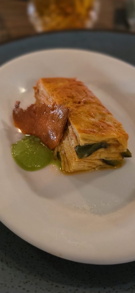 Maridaje: Señorito (Torres Alta Luz, jugo de sandía, jugo de toronja y sal ahumada de chile morita). - Entrante: Sopa seca de natas.