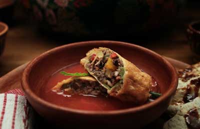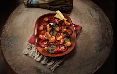 Algunos de nuestros platillos son la sopa de guías de calabaza d Zimatlán, la ensalada de jitomates criollos y hierba santa con aderezo de orégano, el amarillito con hongos de temporada, el estofado con venado, el chichilo negro con guajolote orgánico y el pastel de chocolate oaxaqueño de metate, entre otros.